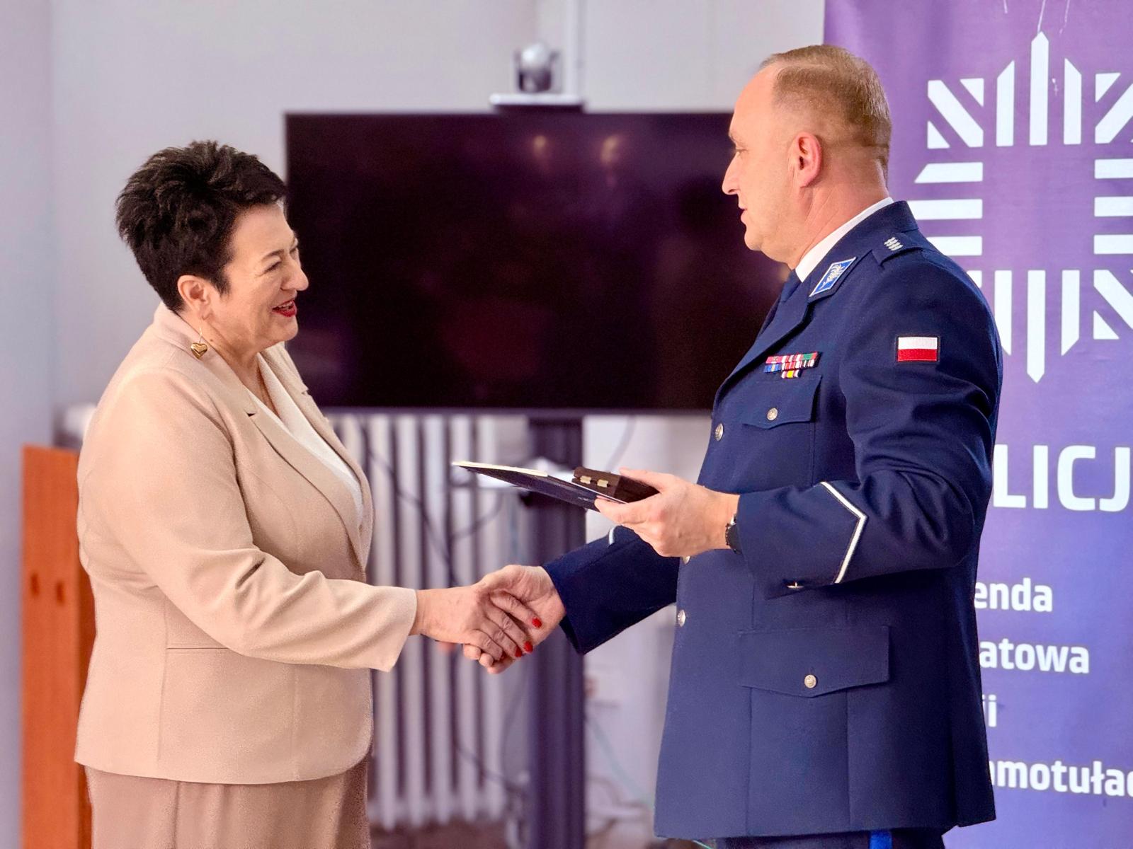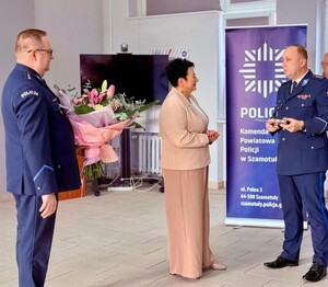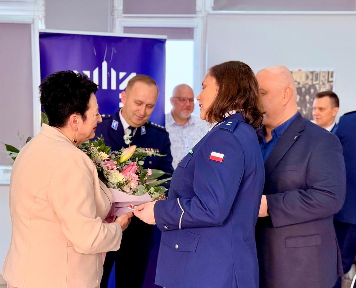 Do podziękowań i gratulacji dołączyła się również Przewodnicząca ZT NSZZ Policjantów KPP Szamotuły podkom. Izabela Kowzan-Budych. Decyzją Przewodniczącego ZW NSZZ Policjantów z dnia 16 stycznia 2026 roku za zasługi na rzecz Niezależnego Samorządnego Związku Zawodowego Policjantów oraz wielkopolskiej Policji Pani Helenie Pospiesznej nadano Brązowy Medal NSZZ Policjantów województwa wielkopolskiego.