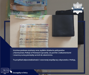 Uczciwa postawa znalazcy oraz szybkie działania policjantów z Komisariatu Policji w Pniewach sprawiły, że portfel z dokumentami i znaczną sumą pieniędzy wrócił do właściciela. To przykład odpowiedzialności i wzorowej współpracy obywatela z Policją.