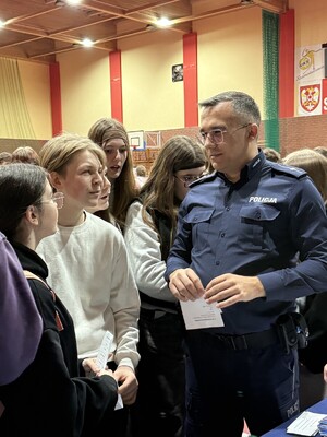Policjanci z Komendy Powiatowej Policji w Szamotułach uczestniczyli w Dniu Edukacji Prawnej, który został zorganizowany przez Sąd Rejonowy w Szamotułach. Była to okazja do rozmowy z młodzieżą na temat służby w Policji, ale również na tematy dotyczące bezpieczeństwa.