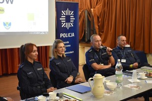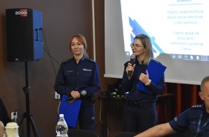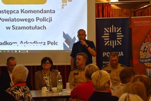 Kolejna część spotkania dotyczyła bezpieczeństwa seniorów w kontekście oszustw. Aby uczulić na skalę problemu, policjantki zajmujące się profilaktyką omówiły sprawy na szkodę seniorów, które prowadzone były w ostatnim czasie przez Policję. Zwrócono uwagę, na to, że nie należy przekazywać pieniędzy obcym osobom, a także nie należy podawać danych do bankowości elektronicznej. Policjantki omówiły też metody działania oszustów i zwróciły uwagę na to, że często wykorzystują presję czasu i „granie” na emocjach. Funkcjonariusze podkreślali, że Policja nigdy nie zadzwoni do seniorów z żądaniem pieniędzy, więc jeśli ktoś w takiej sytuacji podaje się za policjanta, na pewno jest oszustem.