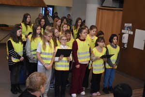 Spotkanie umilili uczniowie ze Szkoły Podstawowej w Dusznikach, którzy przygotowali dla seniorów występ artystyczny w ramach ogólnopolskiego konkursu „Odblaskowa szkoła”. Aby seniorzy byli bezpieczniejsi na drogach, uczniowie rozdali im odblaskowe opaski.