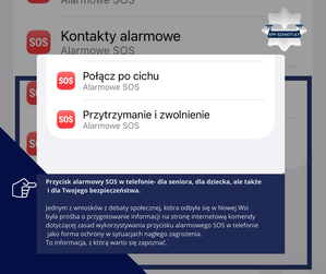 - Przycisk alarmowy SOS w telefonie - dla seniora, dla dziecka, ale także i dla Twojego bezpieczeństwa. Jednym z wniosków z debaty społecznej, która odbyła się pod koniec stycznia br. w Nowej Wsi była prośba o przygotowanie informacji na stronę internetową komendy dotyczącej zasad wykorzystywania przycisku alarmowego SOS w telefonie jako forma ochrony w sytuacjach nagłego zagrożenia. To informacja, z którą warto się zapoznać.