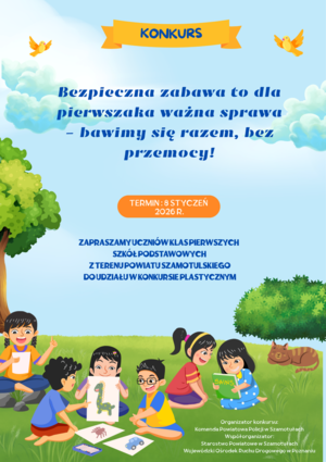Komenda Powiatowa Policji w Szamotułach, Starostwo Powiatowe w Szamotułach oraz Wojewódzki Ośrodek Ruchu Drogowego w Poznaniu ogłaszają konkurs plastyczny dla uczniów klas pierwszych z terenu powiatu szamotulskiego. Konkurs pod hasłem: „Bezpieczna zabawa to dla pierwszaka ważna sprawa – bawimy się razem, bez przemocy” organizowany jest w ramach akcji „ODBLASKOWO-BEZWYPADKOWO”.
