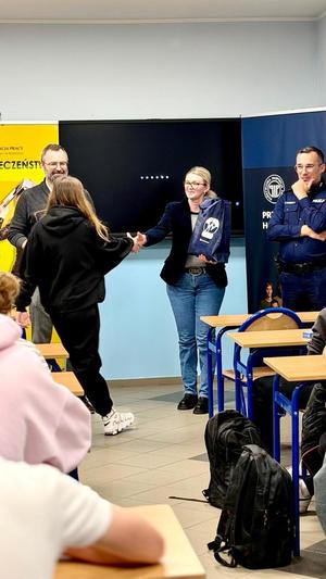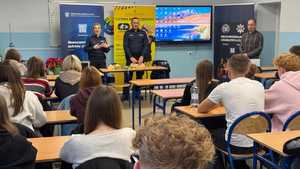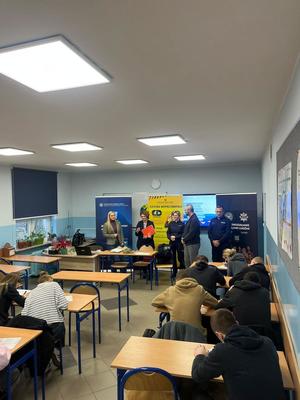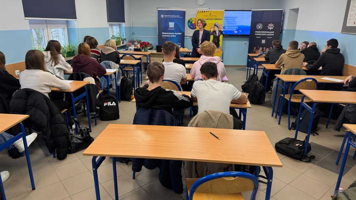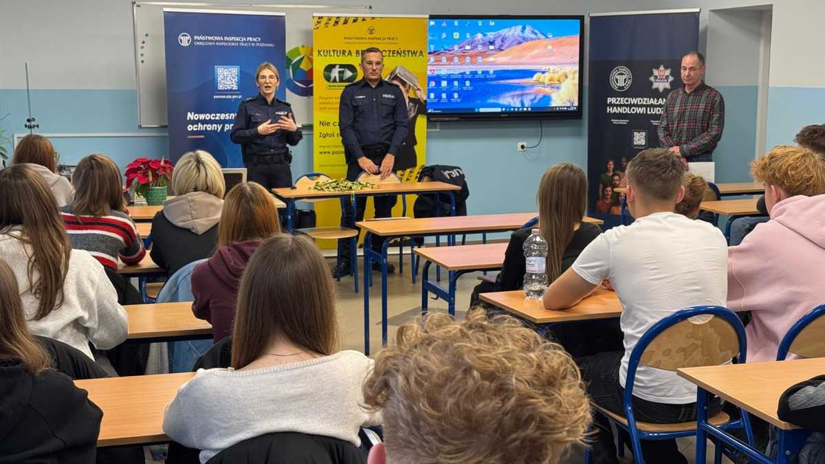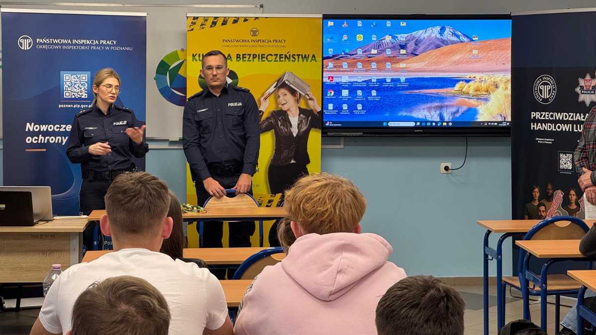 Jak bezpiecznie wejść na rynek pracy i nie paść ofiarą oszustów? O tym rozmawiali przedstawiciele Policji i Państwowej Inspekcji Pracy podczas wspólnych działań edukacyjnych w Zespole szkół nr 2 w Szamotułach. Inicjatywa zorganizowana przez Okręgowy Inspektorat Pracy w Poznaniu przy wsparciu policjantów z Komendy Powiatowej Policji w Szamotułach łączyła wiedzę z zakresu prawa pracy z profilaktyką handlu ludźmi i cyberzagrożeń.