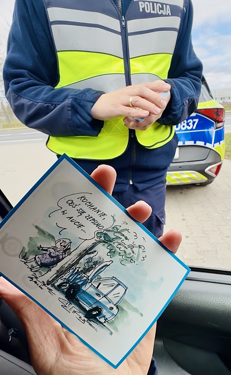 Podczas kontroli drogowych policjanci wręczają kierowcom niewielkie karykatury przedstawiające w humorystyczny sposób codzienne sytuacje na drodze. Często te, które dobrze znamy, choć nie zawsze chcemy się do nich przyznać. To właśnie w tym lekkim, żartobliwym ujęciu kryje się ich siła. Ich celem jest nie tylko wywołanie uśmiechu, ale przede wszystkim zwrócenie uwagi na konsekwencje nieodpowiedzialnych zachowań.