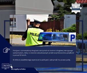 Wczoraj policjanci szamotulskiej drogówki zatrzymali do kontroli drogowej kierującego samochodem, który na terenie zabudowanym przekroczył dozwoloną prędkość o ponad 50 km/h. W efekcie popełnionego wykroczenia policjanci zatrzymali mu prawo jazdy.